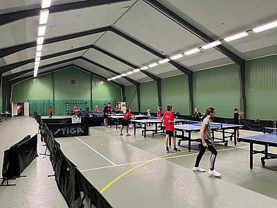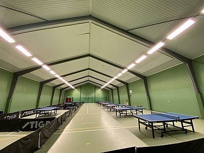Sommarläger i Björkhallen 14-15 juni 2024Bild: Lokalen, fantastiska och engagerade deltagare och ledare i Björkhallen den 14-15 juni 2024. Foto: Victor Karlsson/VIF Bordtennis